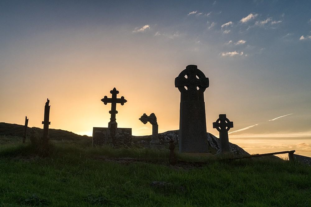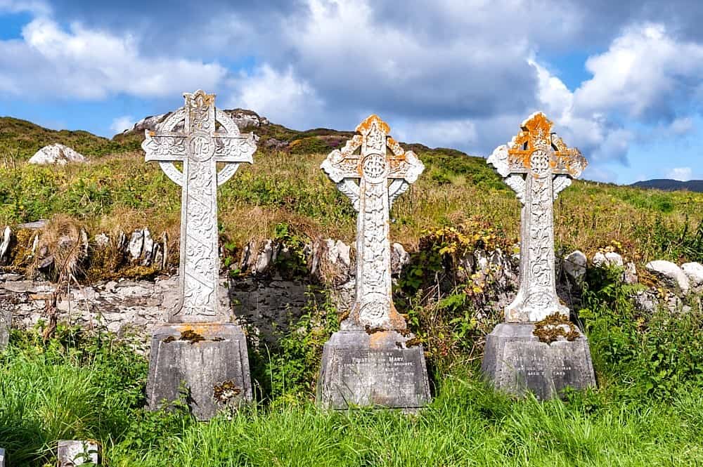 According to legend, the abbey was founded by St. Finnan in the 6th Century. Today the area is used as a cemetery. Abbey Island is part of Derrynane Historic Park.