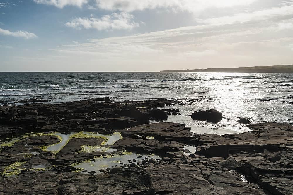 At Clahane near Liscannor you have a magnificent view over Liscannor Bay and Lahinch. Further west at Hag’s Head is the southern edge of the Cliffs of Moher.