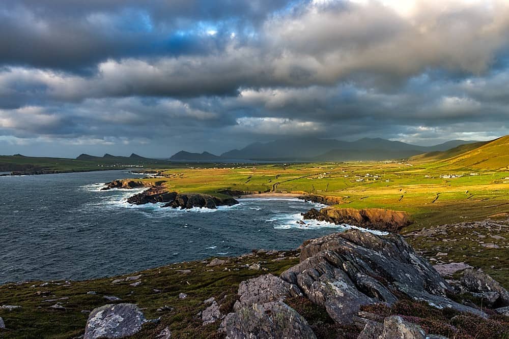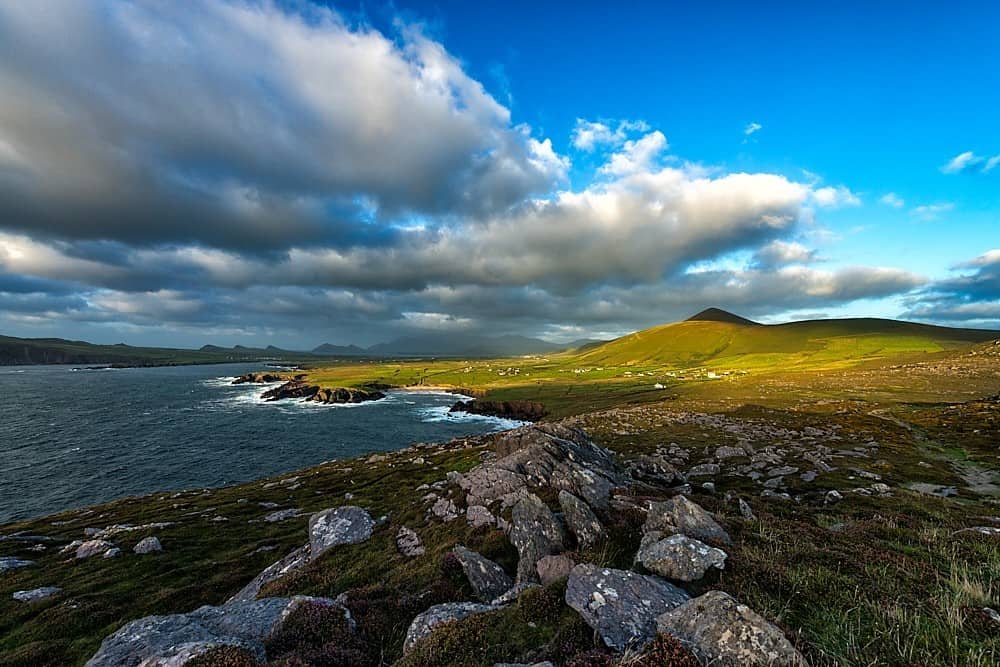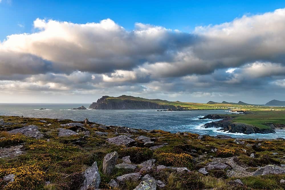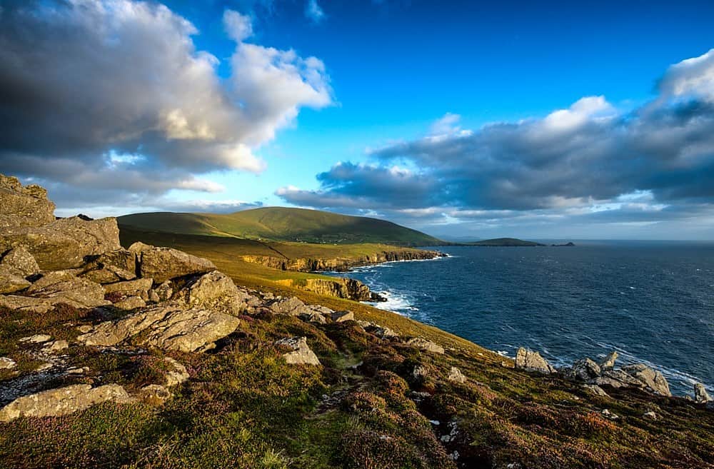 Clogher Head on the Dingle Peninsula offers unrivalled panoramic views over Clogher Beach, Sybil Point, the Three Sisters and Mount Brandon. Climbing up to the hill in a westerly direction, one overlooks the complete Blasket Sound and the Blasket Islands.