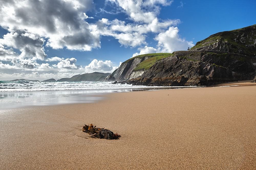 Coumeenoole Bay is located at the Slea Head Drive on the Dingle Peninsula, about 18 km west of Dingle Town. From the Car park you can walk down to the beach and/or up the hill to Dunmore Head.