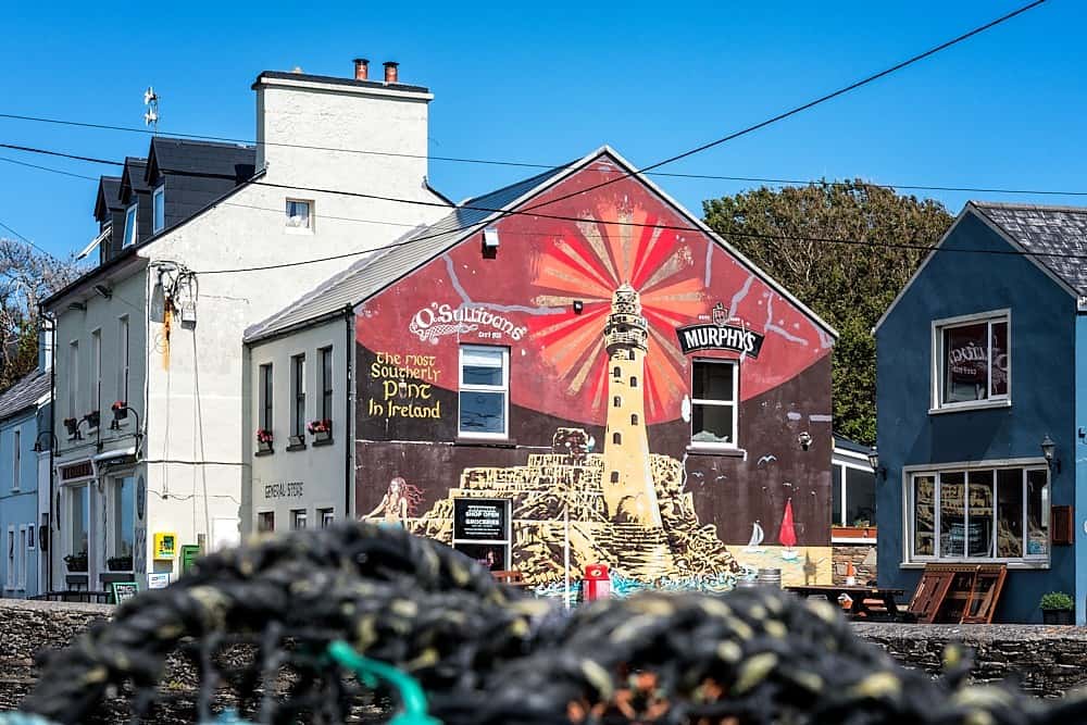 Crookhaven is located in a sheltered bay in the very southwest of the Mizen Peninsula. Opposite the village, in the eastern entrance of the bay, lies Rock Island, with its beautiful Crookhaven Lighthouse.