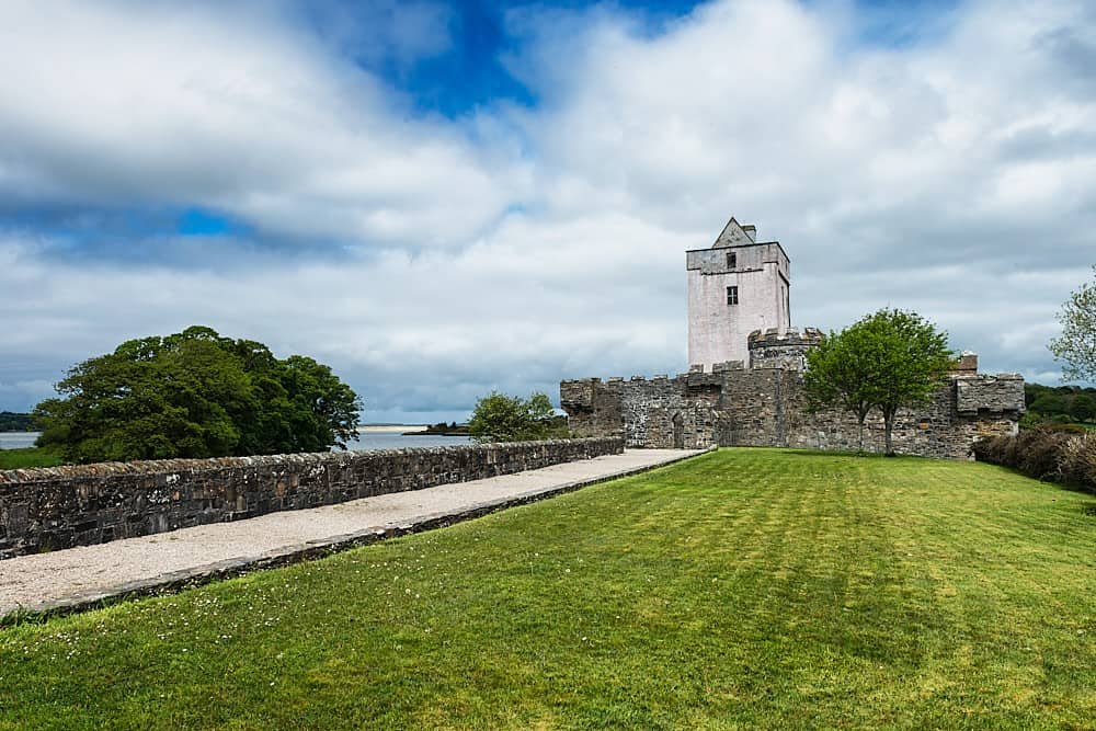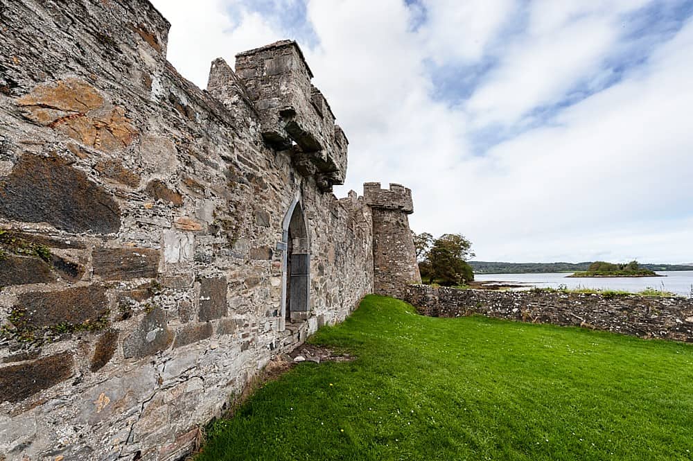 Doe Castle is located about 13 km southeast of Dunfanaghy in County Donegal.