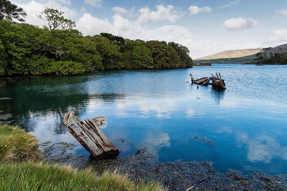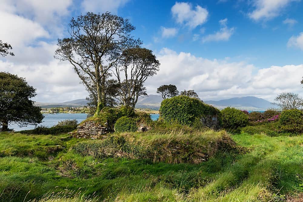 The ruins of Dunboy Castle are located at the entrance to Berehaven Bay. The fortress was once used by the O’Sullivan Beare clan to protect the bay. Taxes from fishing boats that landed in the harbour were collected here. In the famous Siege of Dunboy in 1692, the english troups burned Dunboy Castle to the ground. On the way to Dunboy Castle you pass Puxley Mansion, which was burned down by the IRA in 1920. In the early 2000s, restoration work began on the venerable building (to become a hotel). However, the project was abandoned in 2011.