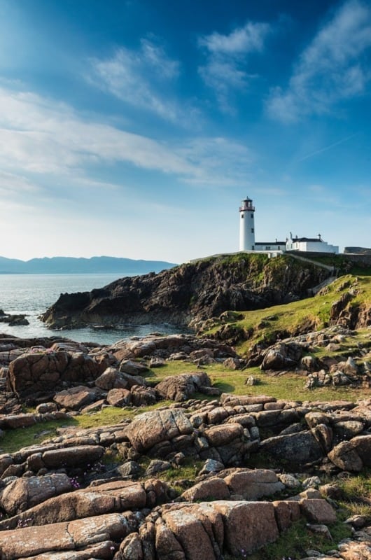 On the northernmost point of Fanad Peninsula lies Fanad Head with its wonderful view on the rough coast of the Atlantic ocean. Right here in this unique surroundings thrones one of Ireland’s most beautiful lighthouses above the crashing waves.