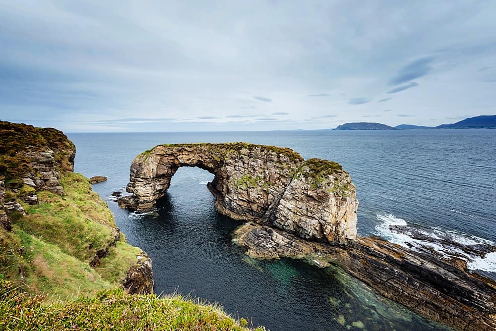 The Great Pollet Arch is located on the Fanad Peninsula in County Donegal, about 24 km north of Milford. There is very minimal signage, so check for the parking place with our directions link. From the parking place it is a 20 minutes stroll down to the sea arch. Simply follow the signpost “POLLET GREAT ARCH TRAIL”.