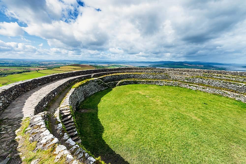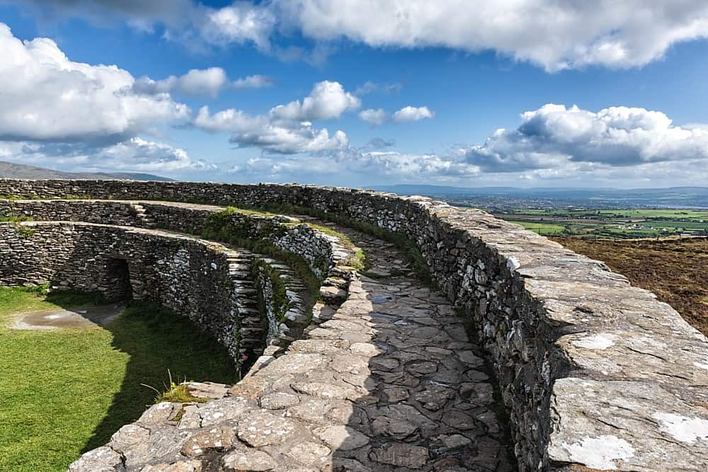 Greenan Mountain was once home to the most powerful fortress in Ulster – the residence of the Kings of Aileach. The ring fort, which today sits on the hill (a 19th century reconstruction true to the original), is only the inner part of what was originally a much larger complex. From the walls of the ring fort you can enjoy panoramic views over green hills and the Lough Swilly.