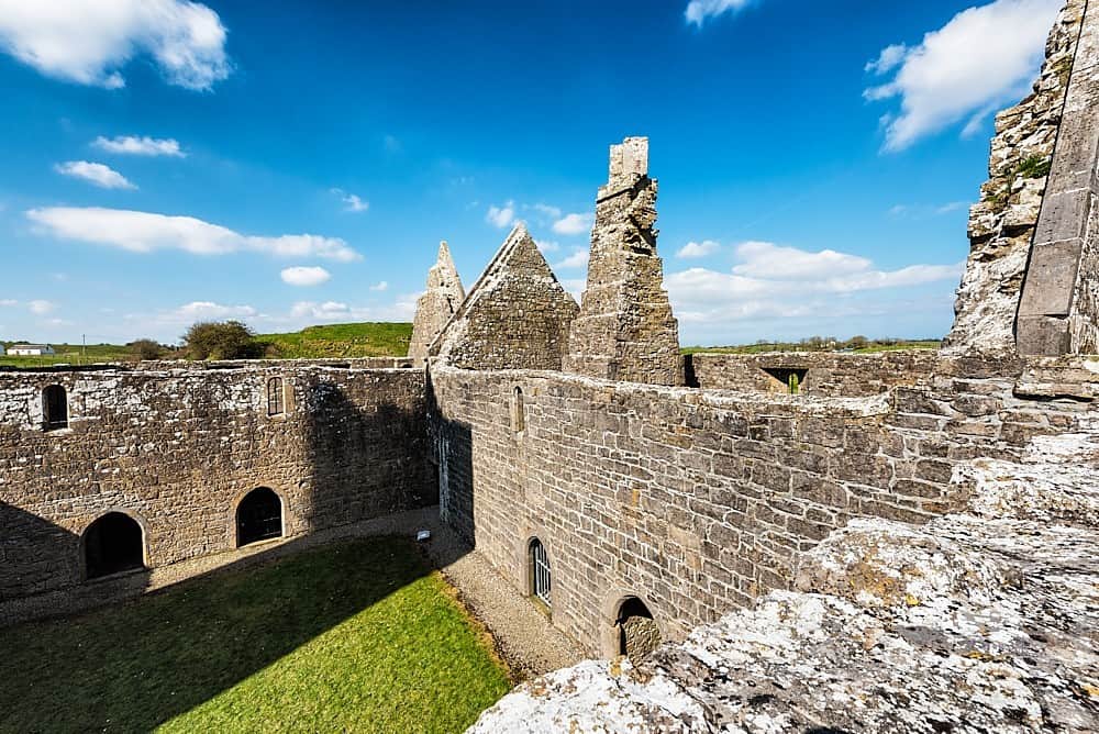 The ruins of the Franciscan friary of Rosserk are located on the western bank of the Moy estuary. The monastery was destroyed in a fire in 1590, only 150 years after being built. Especially remarkable are the west gate of the monastery and the double piscina.