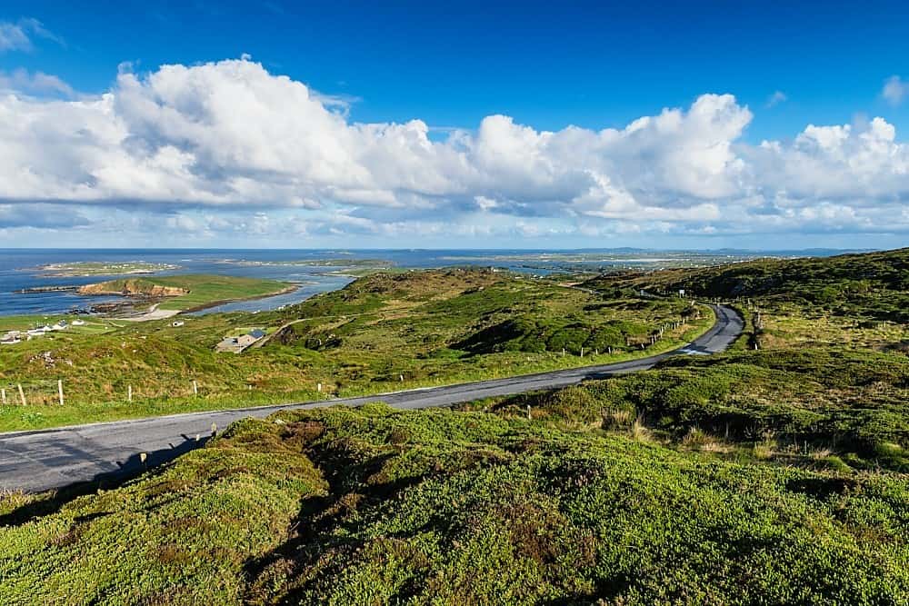 The Sky Road starts and ends in Clifden in Connemara.