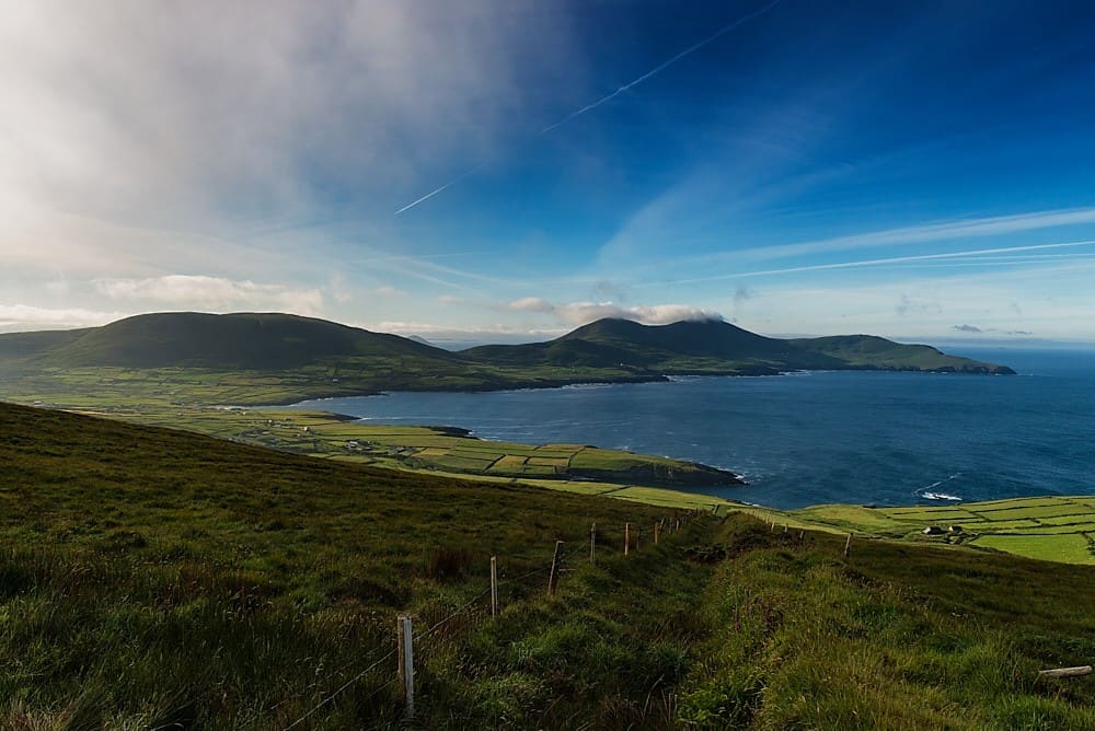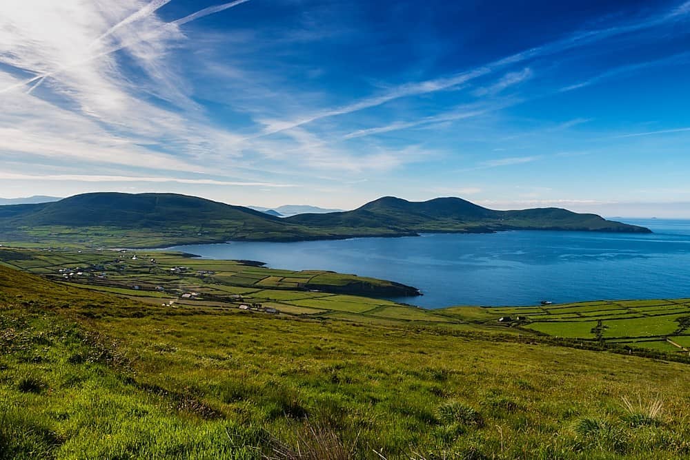 St. Finian’s Bay (also spelled St. Finan’s Bay) is located between Puffin Island and Ducalla Head on Skellig Ring. Here you can immerse into a picture-book landscape. Lush green hills slope gently down to the sea and the crescent-shaped bay is flanked on both sides by protective headlands. Just off the coast is Puffin Island and in some distance you can see the Skellig Islands – a gorgeous sight.