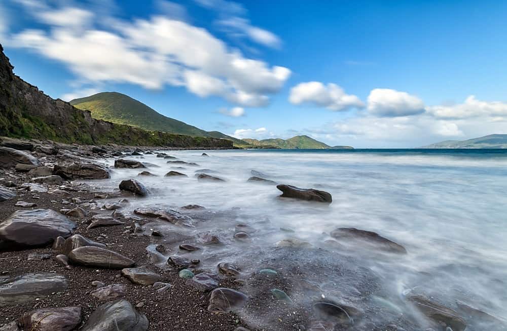 Traloher Strand is located on the Ring of Kerry, about 4 km south of Waterville.
