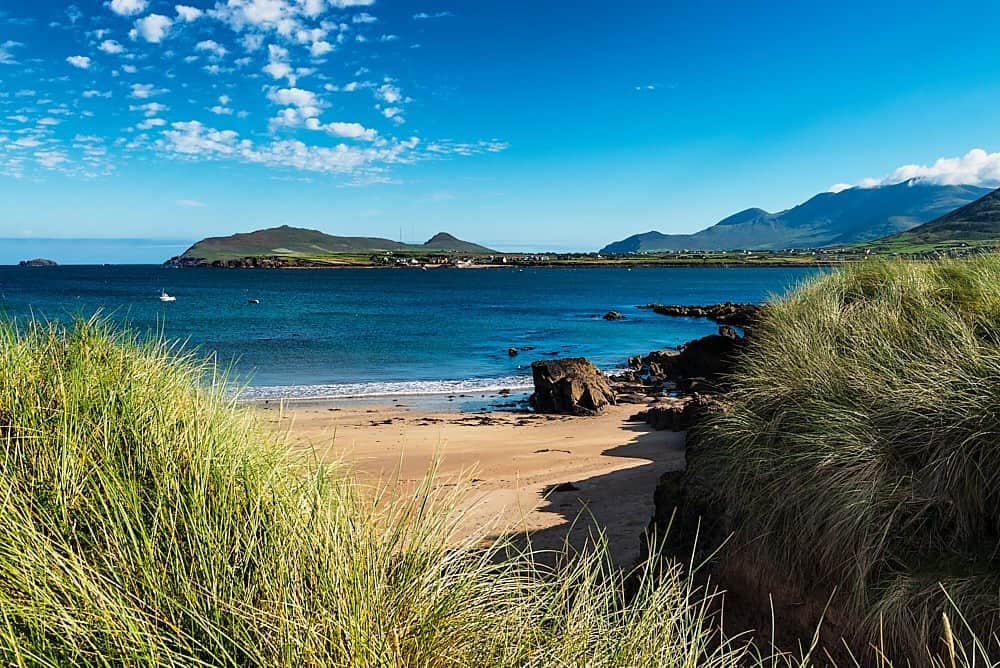 The Wine Strand is one of several beaches at Smerwick Harbour. Due to its remote location, only few visitors come here, even though the view across the bay to Murreagh is truly stunning and a detour is highly recommended.