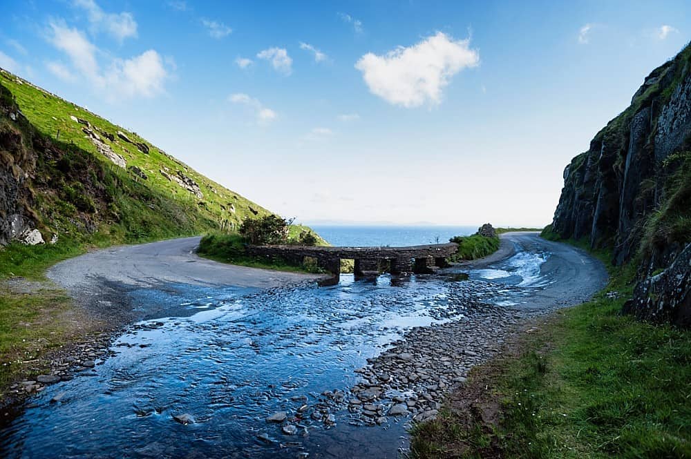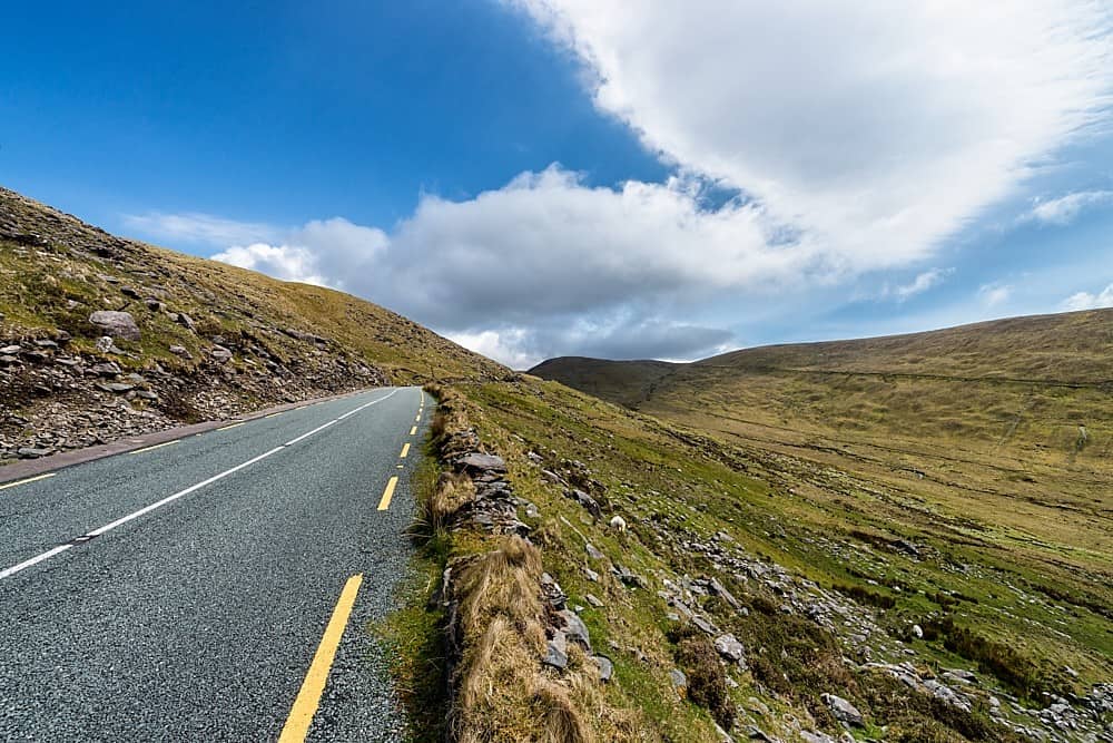 In the far west of the peninsula, the Wild Atlantic Way winds over Conor Pass, Ireland's highest pass road, to Dingle Town. For some, the drive across the pass is a real adventure, as the road is narrowed in many places by overhanging rocks and you have to cope with oncoming traffic.