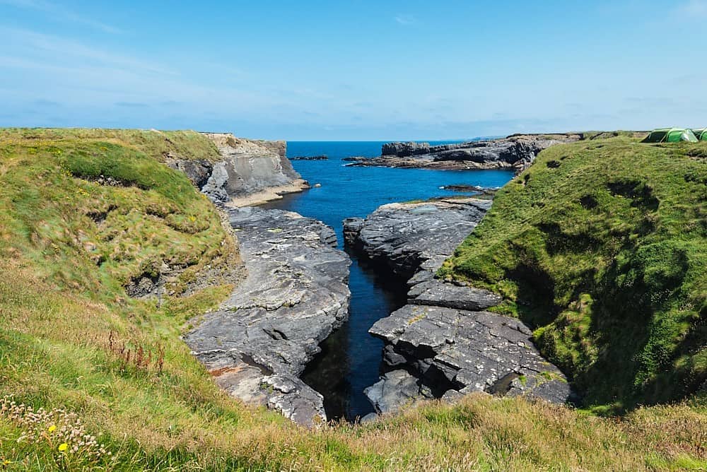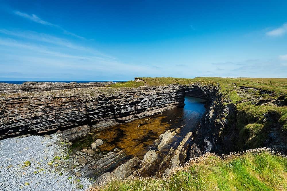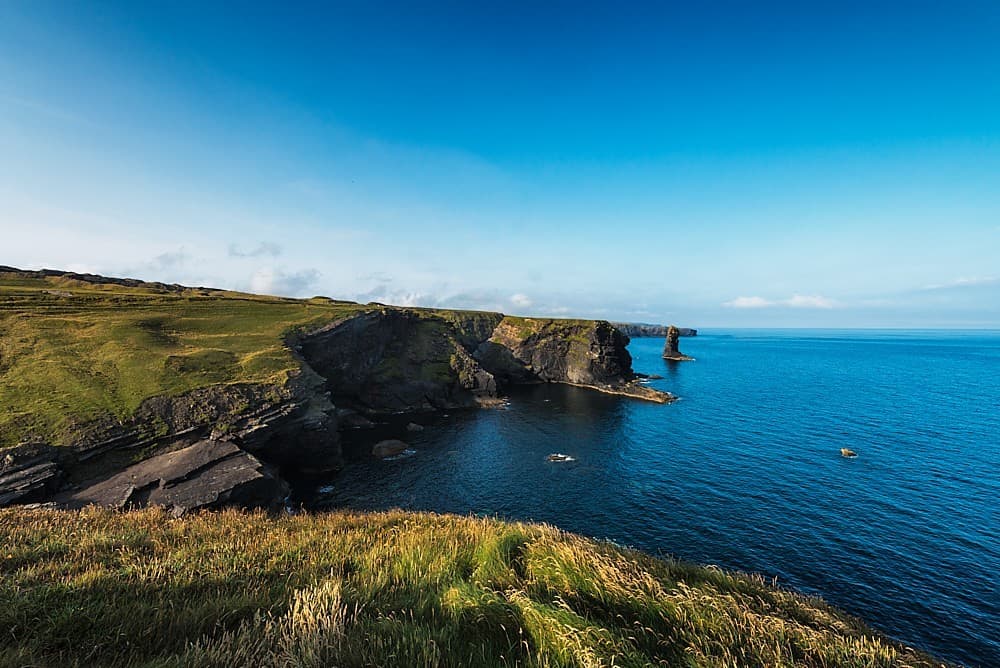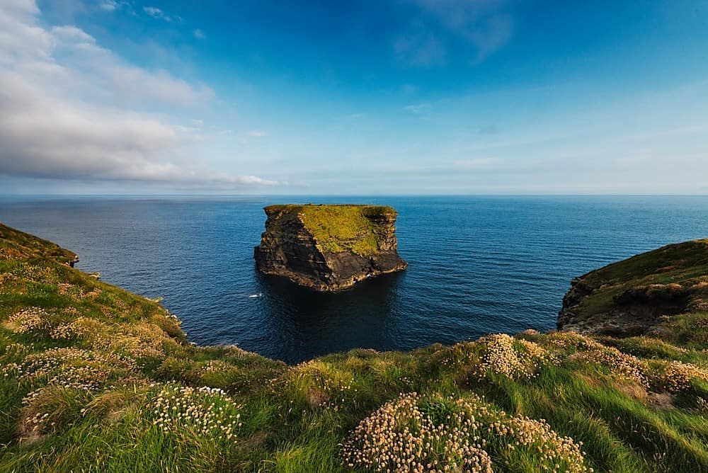 In the heart of West Clare, not too far from Kilkee, you will find a pristine coastal landscape with dramatic cliffs. Here, the Loop Head Drive runs along the rocky coastline - just a few metres off the cliff edge. The impressive rock formations rise up to a height of 80 metres against the waves of the Atlantic.